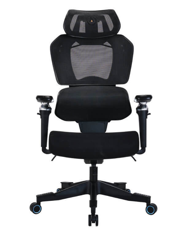 - Ratchet height adjustable, ergonomically shaped mesh back